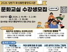 뉴스팍 류은정 기자 | 화성특례시는 지난해 11월 3일 개관한 화성동탄중앙도서관에서 시민들이 다양한 독서·문화 활동을 즐길 수 있도록 2026년 상반기 문화교실 프로그램을 운영한다고 밝혔다. 이번 문화교실은 아동과 성인을 대상으로 총 10개 강좌로 구성됐으며, 연령별 특성과 관심사를 반영한 맞춤형 프로그램으로 운영될 예정이다. 아동 대상 강좌는 ▲동화책과 함께하는 창의독서아트(6~7세) ▲독서미술(초등1~3) ▲책과 함께 마음 한 걸음(초등1~3) ▲초등기자단: 신문으로 배우는 역사와 문화(초등4~6) ▲그림책이랑 통통통(6~7세) ▲서로 생각이 자라는 그림책(초등1~3) ▲디지털드로잉(초등4~6) 등이다. 성인 대상으로는 ▲내 목소리를 찾는 희곡 ▲그림에 머문 마음 한 조각 ▲이야기가 되는 내 일상 글쓰기 등으로 구성했다. 상반기 문화교실 1차 수강생 모집은 2월 19일, 2차 모집은 3월 20일부터 시작될 예정이다. 이와 함께 화성동탄중앙도서관은 시민 주도형 창작 활동을 지원하고, 시민 성장 중심의 독서문화 환경을 조성하기 위해 ‘메이크 북스(Make Books)’ 사업을 운영한다