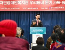뉴스팍 배상미 기자 | 용인특례시는 12일 용인시처인장애인복지관이 한해 동안 나눔을 실천한 후원자와 자원봉사자를 위한 ‘우리동네 온기가득 송년회’를 열었다고 밝혔다. 이 행사에 참석한 이상일 용인특례시장은 장애인복지를 위해 헌신한 후원자와 자원봉사자, 복지관 관계자들을 격려하고, 감사의 마음을 나눴다. 이상일 시장은 “처인장애인복지관은 장애인 복지 수준 향상을 위해 훌륭한 활동을 해왔다”며 “이 자리에 계신 후원자와 자원봉사자 여러분의 헌신적인 노력은 장애와 비장애의 벽을 허물고, 장애인에게 희망을 전달했다”고 말했다. 이 시장은 “용인특례시는 장애인 복지 활동과 정책을 선도적으로 운영하고 있고, 장애인을 위한 시설개선에도 적극 노력하고 있다”며 “장애인복지관에 많은 후원이 모이고 있고, 이 마음이 용인특례시를 따뜻한 공동체 사회로 만들고 있다”고 했다. 이날 행사에는 이상일 시장을 비롯해 지역 주요 내빈, 후원자, 자원봉사자, 복지관 이용자 등 200여 명이 참석했다. 행사는 식전 공연을 시작으로 송년회 영상 시청, 송년사 및 축사, 유공자 표창, 응원 메시지 퍼포먼스 순으로 진행됐