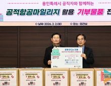 뉴스팍 배상미 기자 | 용인특례시는 2일 시청 접견실에서 ‘공적 항공마일리지 함께 나눔’ 기탁식을 열어 공직자들이 국외출장 과정에서 적립한 공적 항공마일리지를 활용한 기부 물품을 경기사회복지공동동모금회에 전달했다고 밝혔다. 이날 기탁식에는 이상일 시장을 비롯해 시 공직자와 김효진 사회복지공동모금회 경기지회 사무처장 등 10여 명이 참석했다. 이번 기부는 공무국외출장으로 적립한 공적 항공마일리지를 나눔으로 전환한 첫 사례로, 올해 소멸 예정 마일리지 보유자와 향후 3년 이내 퇴직 예정자, 공적 항공마일리지 보유 직원 등 공직자 200여 명이 참여했다. 참여 공직자들이 기부한 공적 항공마일리지를 활용해 약 2700만 원 상당의 프라이팬, 담요, 치약 등 생필품 40여 종의 물품을 마련했다. 해당 물품은 경기사회복지공동모금회를 통해 지역 취약계층에 전달될 예정이다. 이상일 시장은 “기부를 통해 김효진 처장님을 비롯한 관계자들을 자주 뵙게 되니 반갑고, 직원들과 함께 의미 있는 일을 이어갈 수 있어 뜻깊게 생각한다”며 “공무국외출장으로 적립된 공적 항공마일리지는 개인이 사용하는 것이 아니라, 이렇게 사회