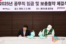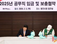 뉴스팍 배상미 기자 | 용인특례시는 5일 시청 접견실에서 시 소속 공무직 근로자를 대표하는 전국민주연합노동조합 용인지부와 ‘2025년 공무직 임금·보충 협약’을 체결했다고 밝혔다. 이날 체결식에는 이상일 시장과 최승덕 전국민주연합노동조합 용인지부장을 비롯한 노사 교섭위원 10여 명이 참석했다. 이번 협약에는 ▲직종별 기본급 3.2~3.7% 차등 인상 ▲국내 문화체험 제도 신설 ▲질병·육아휴직 복직자의 휴가권 확대 ▲생일 휴가 신설 등 근로 여건과 복지 수준을 개선하는 사항이 포함됐다. 노사 양측은 지난해 4월 24일 제1차 본교섭을 시작으로 본교섭 13회, 실무교섭 7회 등 총 20차례에 걸친 협의를 통해 올해 1월 잠정 합의안을 도출했다. 노조는 지난달 28일 조합원 찬반투표를 거쳐 협약을 최종 확정했다. 이번 협약에 따른 임금 인상분은 2025년 근무분에 대해 소급 적용된다. 이상일 시장은 “시의 어려운 사정을 헤아려 주고 협상을 잘 마무리해 주신 데 대해 감사드린다”며 “앞으로 시의 재정 여건이 점차 나아지게 될텐데, 여러분이 하고 있는 일들을 더 적극적으로 응원하고 지원하겠다”