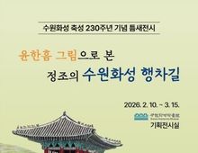뉴스팍 배상미 기자 | 수원화성박물관이 수원화성 축성 230주년을 맞아 3월 15일까지 기획전시실에서 틈새전시 ‘윤한흠 그림으로 본 정조의 수원화성 행차길’을 개최한다. 수원화성 축성 230주년과 ‘수원 방문의 해’를 기념해 마련한 이번 전시에서 윤한흠 화백이 1977년부터 1980년 사이 수원 토박이 어르신들의 구술과 자신의 기억을 바탕으로 그린 정조의 수원화성 행차길 모습을 만날 수 있다. 전시는 ▲수원 입성길과 화서문 행차길 ▲방화수류정 버들잎살길 ▲동장대 수행길 ▲현륭원 원행길 등 네 가지 주제로 구성했다. 윤한흠 화백의 회화 작품과 일부 미공개 스케치도 처음 선보인다. 당시 수원화성의 풍경을 생생하게 살펴볼 수 있다. 수원화성박물관 관계자는 “시민의 기억과 예술 작품으로 수원화성의 역사적 가치와 정조의 1797년 2박 3일 수원행차 의미를 되새기는 전시”라며 “230년 전 수원화성의 모습을 그림으로 만나보길 바란다”고 말했다. 수원화성박물관 기획전시실에서 관람할 수 있다. 매주 월요일은 휴관한다.