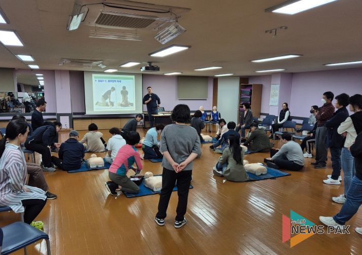 뉴스팍 배상미 기자 | 군포시 오금동 주민자치회은 4월 11일과 12일 이틀간 주민들의 응급 대처 능력 향상과 안전의식 고취를 위해 주민자치센터 프로그램 수강생과 오금동 주민자치위원을 대상으로 심폐소생술 교육을 실시했다.