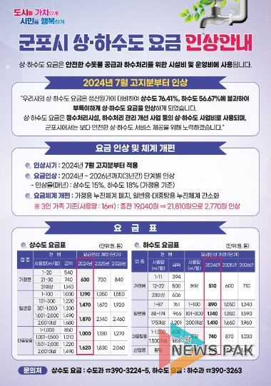 뉴스팍 류은정 기자 | 군포시 수도요금이 2024년 7월 고지분부터 인상된다.