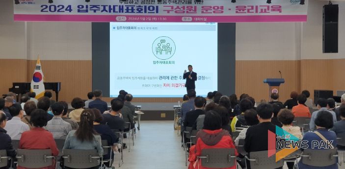 뉴스팍 류은정 기자 | 군포시는 지난 5월 2일 시청 대회의실에서 관내 80개 의무관리대상 단지의 입주자대표회의 구성원 약 200여명을 대상으로 ‘2024 입주자대표회의 구성원 운영 및 윤리교육’을 실시했다고 밝혔다.