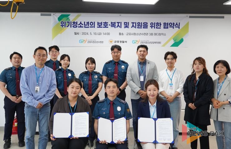 뉴스팍 류은정 기자 | (재)군포시청소년재단 군포시청소년수련관과 군포경찰서 여성청소년과, 군포청소년상담복지센터는 지난 5월 10일 관내 위기청소년의 보호․복지 및 지원을 위한 업무협약을 체결했다.