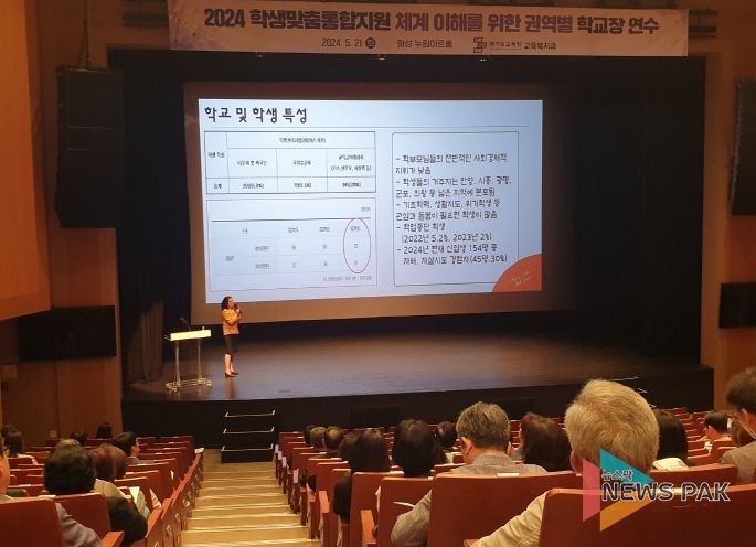 뉴스팍 배상미 기자 | 경기도교육청이 학생맞춤통합지원 체계 확대를 위해 21일부터 30일까지 총 8회에 걸쳐 초·중·고·특수학교장 대상 학생맞춤통합지원 연수를 운영한다.