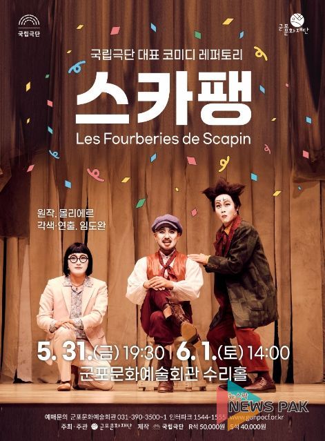 뉴스팍 배상미 기자 | 군포문화재단은 오는 5월 31일, 6월 1일 양일간 국립극단의 대표 코미디 레퍼토리“스카팽”을 군포문화예술회관 수리홀 무대에 올린다.