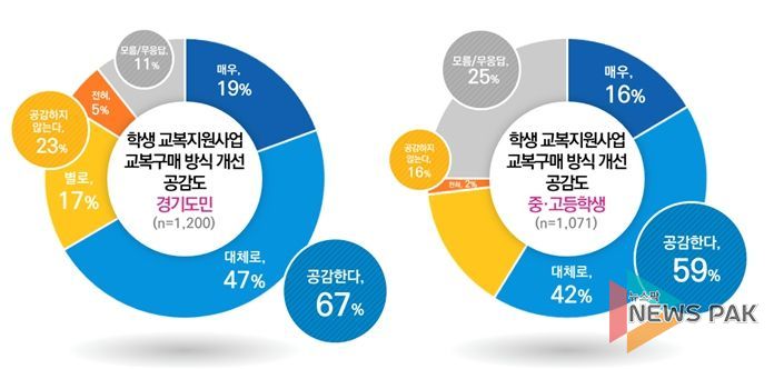 뉴스팍 배상미 기자 | 경기도민과 도내 중·고등학생 3명 중 2명이 학교가 직접 교복을 구매해 지급하는 현재의 방식에 대해 개선이 필요하다는 의견을 제시했다.