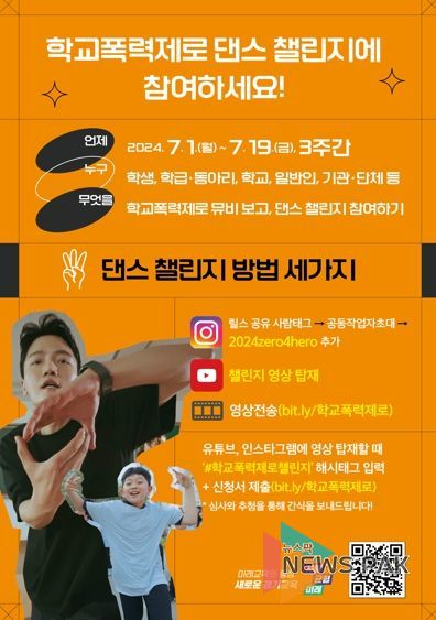 뉴스팍 배상미 기자 | 경기도교육청이 학교폭력 예방 문화 조성을 위해 학교폭력제로 캠페인과 댄스 챌린지를 오는 7월 1일부터 19일까지 운영한다.