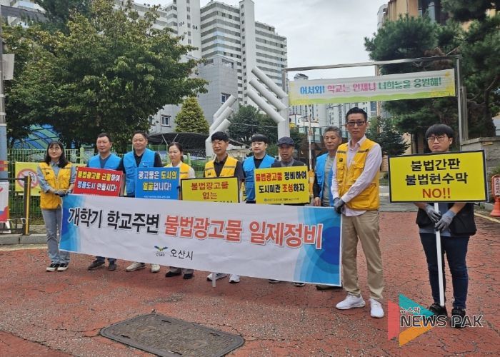 뉴스팍 이소율 기자 | 오산시는 2025년 9월 18일, 개학기를 맞아 학생들의 안전한 통학 환경을 확보하고 쾌적한 학습 공간을 제공하기 위해 학교 주변의 불법 현수막에 대한 일제 정비를 실시했다고 밝혔다.