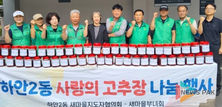한편, 하안2동 새마을지도자협의회와 부녀회는 매년 고추장 나눔뿐 아니라 ‘사랑의 김장 담가주기’ 등 다양한 나눔 활동을 이어오며 지역사회에 나눔 문화를 확산하고 있다.
