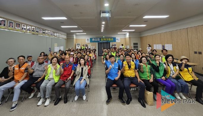 뉴스팍 이소율 기자 | 평택시 중앙동 행정복지센터는 대한민국 새 단장 캠페인의 취지에 따라, ‘새로운 대한민국의 마음으로, 고향 손님맞이’라는 표어 아래 주민자치회, 통장협의회 등 12개 단체와 함께 지난 18일 110여 명이 참여한 가운데 서정리역 및 서정리 전통시장 일원을 중심으로 추석맞이 합동 대청소를 진행했다.