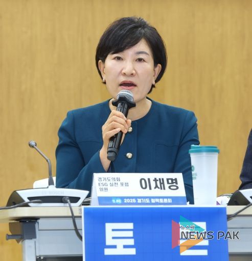 뉴스팍 배상미 기자 | 경기도의회 이채명 의원(더불어민주, 안양6)은 22일 오전, 경기도의회 대회의실에서 박옥분 의원(더불어민주, 수원2)이 좌장을 맡아 진행한 '2025년 하반기 경기도 정책토론회'의 일환, '지속가능한 경기도를 위한 ESG 공공혁신 방안 토론회'에 토론자로 참여해, 경기도형 ESG 평가지표와 실행계획이 실질적 성과로 이어지기 위한 과제와 제언을 밝혔다.