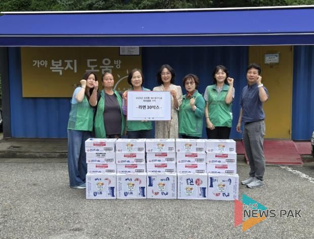이번에 기탁된 라면은 수리동 내 독거어르신과 저소득층 가구 등에 전달될 예정이다.