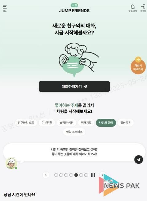 뉴스팍 배상미 기자 | 수원특례시가 생성형 AI 기반 고위험 고립 위기 청(소)년 공감상담서비스 ‘JUMP FRIENDS’(점프 프렌즈)를 22일 정식 오픈했다.