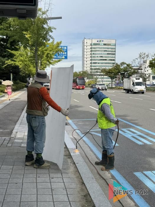 뉴스팍 배상미 기자 | 수원특례시는 보행자 안전사고를 예방하기 위해 화서초등학교 어린이보호구역과 시청사거리~경기아트센터사거리 구간에 있는 화강암 경계석에 미끄럼 방지 시공을 했다.