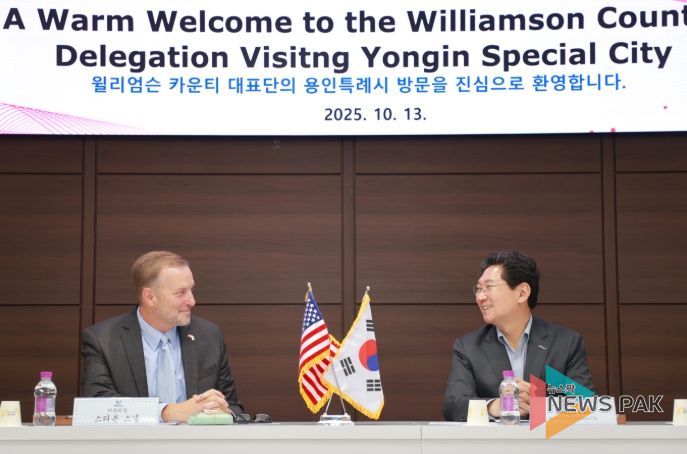 뉴스팍 배상미 기자 | 이상일 용인특례시장이 13일 용인의 자매도시인 미국 텍사스주 윌리엄슨카운티의 대표단과 만나 양 도시의 발전을 위한 협력 방안을 논의했다.