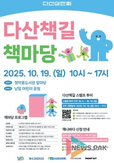 뉴스팍 배상미 기자 | 남양주시 다산동 소재 정약용도서관 앞마당과 낟알 어린이 공원에서 오는 19일 “다산책길 책마당” 행사가 열린다.