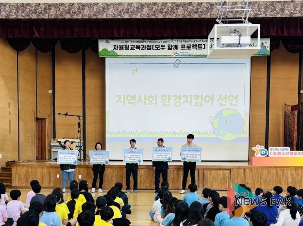 뉴스팍 배상미 기자 | (재)광명시청소년재단(이사장 박승원) 디딤청소년활동센터(센터장 안미선)는 충현초등학교(교장 김형식), 광명시 1.5℃기후의병 지원센터(탄소중립정책팀장 김현태), 광명시환경교육센터(센터장 김동현), 광명업사이클아트센터(센터장 강진숙), 광명YMCA(사무총장 윤재향)와 연계하여 10월 15일 ‘환경지킴이 선언식’을 진행했다.