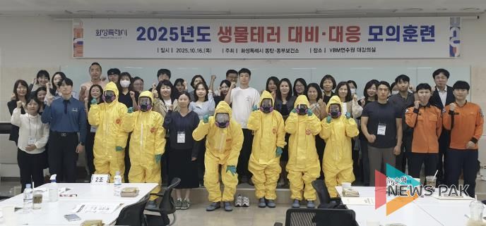 뉴스팍 류은정 기자 | 화성시가 16일 YBM연수원에서 ‘2025년 생물테러 대비·대응 모의훈련’을 실시했다.