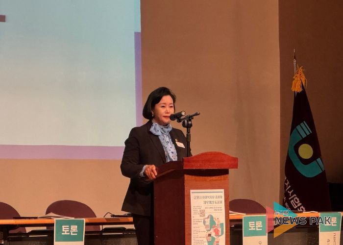 뉴스팍 배상미 기자 | 경기도의회 정윤경 부의장(더불어민주당, 군포1)은 10월 17일 군포시문화예술회관에서열린 군포시 사회복지 종사자 처우개선 토론회에 참석해, 사회복지 현장의 목소리에 귀 기울이며 지속가능한 복지체계 구축을 위한 정책적 의지를 밝혔다.