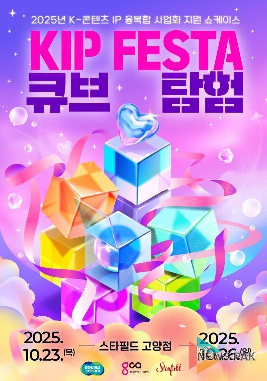 뉴스팍 배상미 기자 | 경기도의 ‘K(케이)-콘텐츠 지식재산권(IP) 융복합 제작 지원’ 사업을 통해 완성된 13개 콘텐츠가 오는 10월 23일부터 26일까지 스타필드 고양점 센트럴 아트리움에서 ‘킵(KIP) 페스타: 큐브 탐험’이라는 이름으로 공개된다.