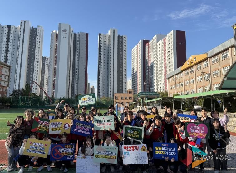 뉴스팍 이소율 기자 | (재)평택시청소년재단이 지난 10월 21일부터 29일까지 관내 중고등학교 3개교를 대상으로 평택경찰서(여성청소년과)와 각 학교 학생회와 협력하여 ‘찾아가는 학교폭력 예방 캠페인’을 성공적으로 마무리했다고 밝혔다.