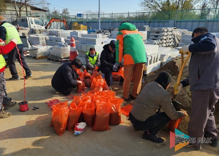 뉴스팍 이소율 기자 | 평택시 지산동이 겨울철 대설 피해 예방을 위해 선제 대응에 나섰다. 지산동 자율방재단은 지난 18일 대설 대비 모래주머니 제작 작업을 하고, 주요 취약지 점검에 돌입했다.