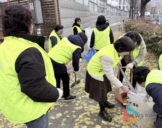 이날 참여자들은 내리막길 보도에 쌓인 낙엽을 집중적으로 쓸어 담고 도로변 낙엽을 수거하는 한편, 빗물받이(우수전) 주변 낙엽과 쓰레기를 제거했다.