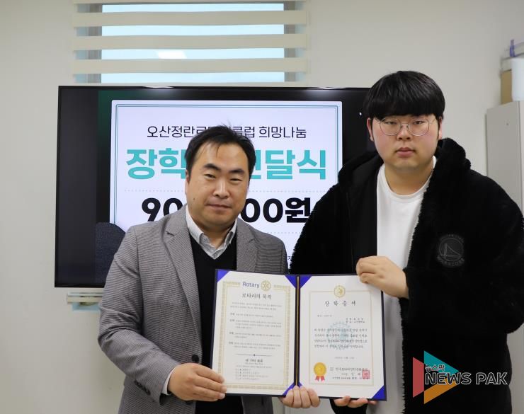 뉴스팍 이소율 기자 | 오산장애인종합복지관은 지난 15일 오산정란로타리클럽으로부터 경제적 어려움을 겪는 장애가정 학생 지원을 위한 장학금 90만 원을 기탁받고 전달식을 개최했다고 밝혔다.