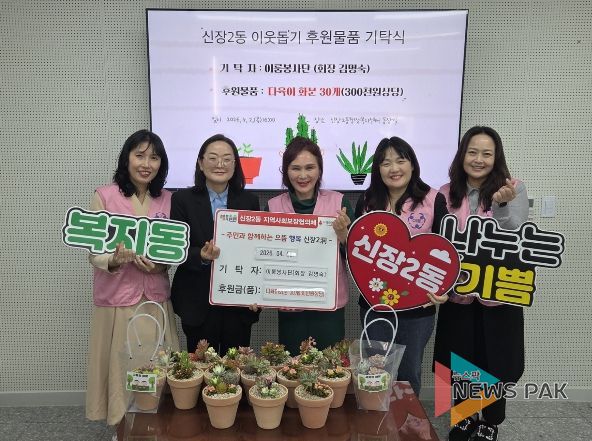 뉴스팍 이소율 기자 | 오산시 신장2동은 지난 2일 지역 봉사단체 이룸봉사단으로부터 관내 취약계층 아동의 정서적 안정과 주거 환경 개선을 위한 ‘사랑의 다육이 화분’ 30개(30만원 상당)를 기탁받았다고 밝혔다.