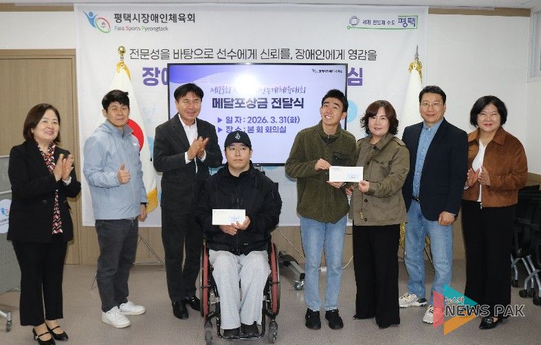 뉴스팍 이소율 기자 | 평택시장애인체육회는 지난 1일 강원특별자치도 일원에서 개최된 ‘제23회 전국장애인동계체육대회’에서 우수한 성적으로 시의 위상을 높인 선수들을 대상으로 메달 포상금 전달식을 진행했다.