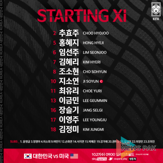 뉴스팍 이소율 기자 | 미국과의 친선 2차전에 나설 여자 국가대표팀의 선발 명단이 발표됐다.