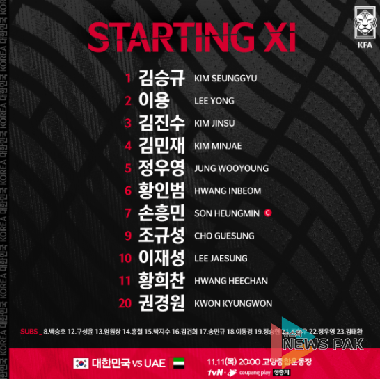 뉴스팍 이소율 기자 | UAE와의 2022 카타르 월드컵 아시아지역 최종예선 A조 5차전에 나설 남자 국가대표팀의 명단이 발표됐다.