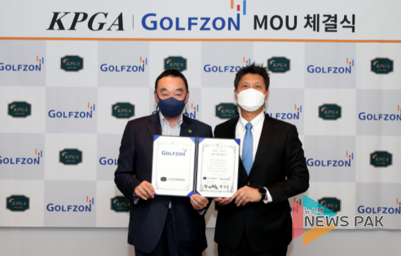 뉴스팍 이소율 기자 | (사)한국프로골프협회(회장 구자철, KPGA)와 ㈜골프존(대표이사 박강수,골프존)이 업무 제휴 협약을 체결했다.