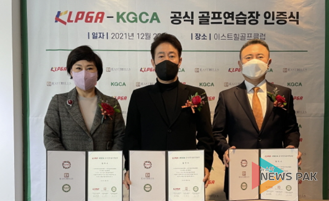 뉴스팍 이소율 기자 | 12월 27일(월), 한국여자프로골프협회(KLPGA)가 한국골프연습장협회(KGCA)와 함께 시작한 ‘KLPGA-KGCA 공식 골프 연습장 인증사업’ 4호로 제주도 제주시에 위치한 이스트힐스 골프클럽을 선정해 인증식을 진행했다.