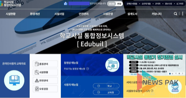 뉴스팍 이지율 기자 | 경기도교육청은 학교시설 유지ㆍ보수 관리 시스템 도입으로 공문 없이 온라인으로 학교시설 보수ㆍ관리 가능한 업무 체계를 구축했다고 밝혔다.