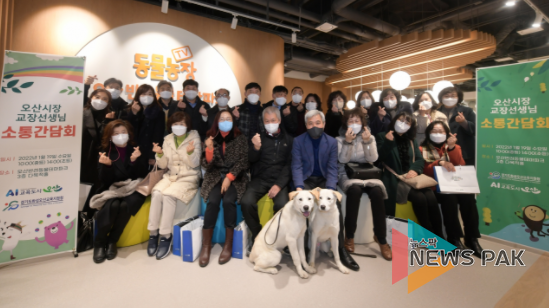 뉴스팍 이지율 기자 | 곽상욱 오산시장은 19일 관내 전체 42개교 초·중·고 교장선생님들이 참석한 가운데 새로 문을 연 오산반려동물테마파크에서 2022년 오산시 미래교육을 위한 소통 간담회를 진행했다.