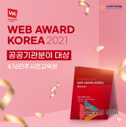 뉴스팍 이지율 기자 | 4.16민주시민교육원이 한국인터넷전문가협회(KIPEA)가 주최하는 ‘2021 웹어워드 코리아’ 공공기관분야 대상을 수상했다고 20일 밝혔다.