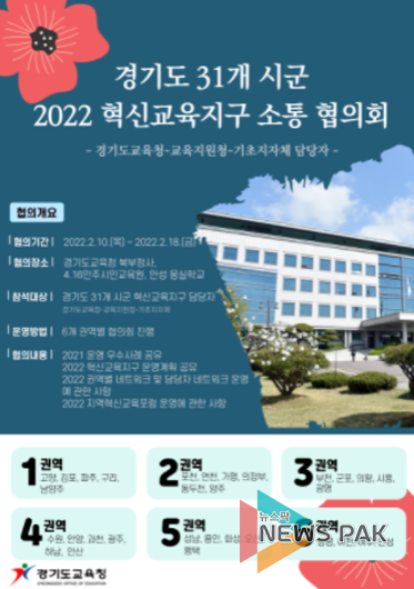 뉴스팍 이지율 기자 | 경기도교육청은 31개 시군과 ‘2022년 혁신교육지구 운영’을 위해 협의회를 연다.