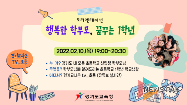 뉴스팍 이지율 기자 | 경기도교육청은 오는 10일 초등학교 신입생 자녀를 둔 학부모를 대상으로 예비 교육(오리엔테이션)을 온라인으로 진행한다.