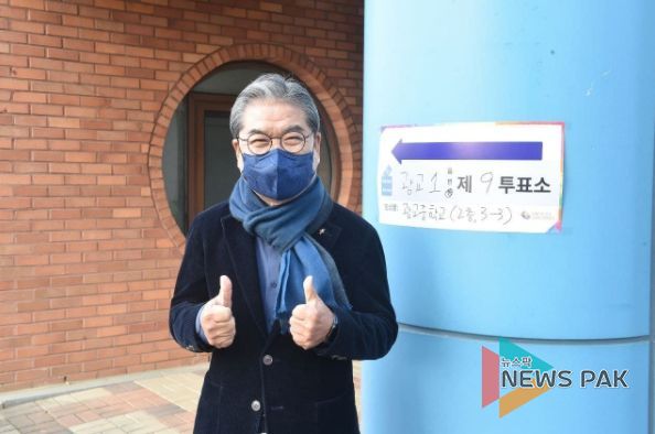 뉴스팍 이지율 기자 | 이재정 경기도교육감이 제20대 대통령 선거 투표일인 9일 오전 8시, 수원시 광교1동 제9투표소 광교중학교를 찾아 투표했다.