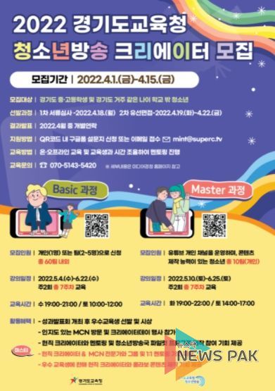 뉴스팍 이지율 기자 | 경기도교육청이 4월 1일부터 15일까지 청소년 크리에이터 70팀을 모집한다.