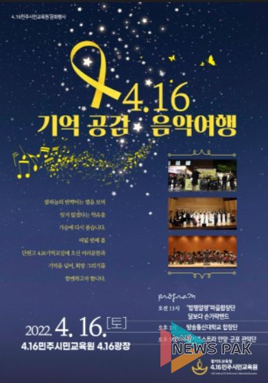 뉴스팍 이지율 기자 | 4.16민주시민교육원(원장 전명선)이 16일 ‘기억 공감 음악여행’을 진행한다고 14일 밝혔다.