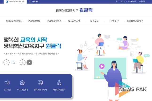 뉴스팍 이지율 기자 | 평택교육지원청과 평택시는'온마을원클릭'사업을 확대 운영한다. '온마을원클릭'은 학교와 지역 대표 체험처를 간편하게 연결하는 ‘지역맞춤형 체험학습 지원 시스템’으로 학교에서 프로그램을 신청하면 체험처 예약, 버스 신청, 이용요금 정산 등의 업무는 교육청과 시청의 협업 기관인 창의채움교육센터에서 담당한다.