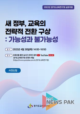 뉴스팍 이지율 기자 | 경기도교육연구원(원장 이수광)은 오는 28일 오후 2시 경기도교육연구원 대강당에서 새 정부의 교육적 구상에 대하여 ‘전환’의 관점에서 조망하는 심포지엄을 개최한다.