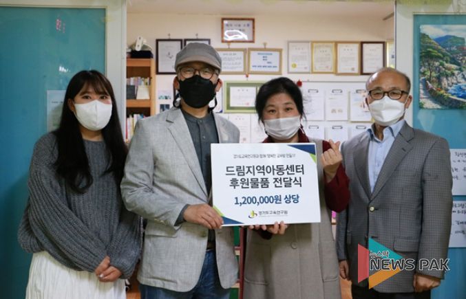 뉴스팍 이지율 기자 | 경기도교육연구원(원장 이수광)은 3일 지역아동센터를 이용하는 어린이들을 지원하기 위해 수원 ‘드림지역아동센터’를 방문하여 ‘행복한 공부방 만들기’ 후원 캠페인을 진행했다.