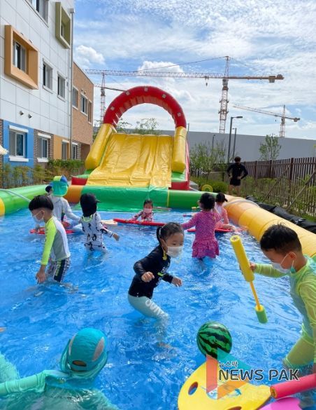 뉴스팍 이지율 기자 | 새말유치원(원장 여선화)은 무더운 여름을 맞이하여 7월 첫째 주를 물놀이 주간으로 정하고 학년별 물놀이 안전교육을 실시하였다. 7일과 8일 이틀간 슬라이딩 수영장을 비롯한 물총놀이와 비눗방울 놀이 등으로 '야호! 신나는 물놀이'를 유치원 뜰에서 운영하였다.