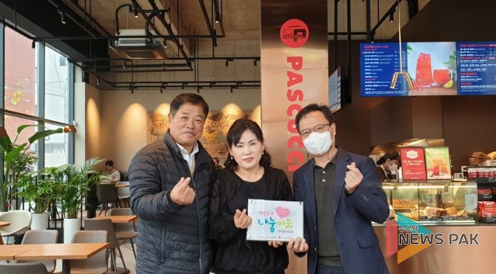 뉴스팍 진금하 기자 | 지난 21일 이영희 부곡동장과 전영배 부곡동지역사회보장협의체부위원장은 부곡중앙로에 위치한 ‘파스쿠찌 의왕역점’을 찾아 ‘천사나눔이웃' 42호점 현판을 전달했다.