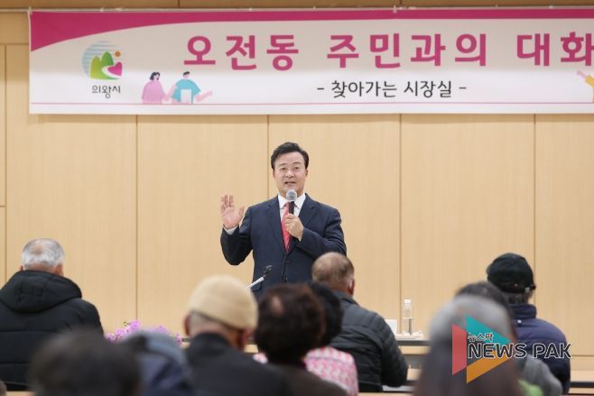 뉴스팍 진금하 기자 | 11월 23일 의왕시 오전동을 찾은 김성제 의왕시장의 ‘찾아가는 시장실’은 지역 주민들의 고충과 불편 민원사항을 현장에서 여과없이 듣고 격의 없는 대화를 통해 문제점을 함께 고민하고 해결하는 자리로 진행됐다.